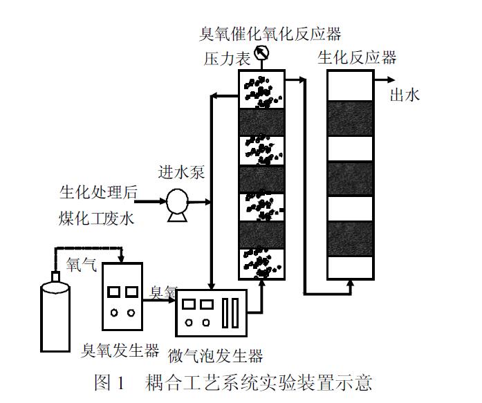 本研究采用微氣泡臭氧催化氧化-生化耦合工藝,對某實際煤化工廢水生化出水進行深度處理.水質(zhì)分析表明,該廢水生化出水存在大量含氮雜環(huán)芳烴類污染物,可生化性極差,傳統(tǒng)曝氣生物濾池(BAF)對其COD去除率僅6.4%,難以采用生化工藝直接處理.本研究采用微氣泡臭氧催化氧化含氮雜環(huán)芳烴類污染物,提高廢水可生化性并去除部分COD,而后采用生化處理進一步去除COD 和氨氮.此外,還考察了微氣泡臭氧催化氧化-生化耦合處理去除污染物性能,并分析了處理過程中含氮雜環(huán)芳烴類污染物降解和可生化性變化,以期為該耦合工藝應用于煤化工廢水深度處理和含氮雜環(huán)芳烴類污染物去除提供參考.